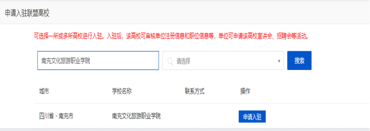 注册过程中,在申请入驻联盟高校时,请填写学校全称“南充文化旅游职业学院”申请入驻。